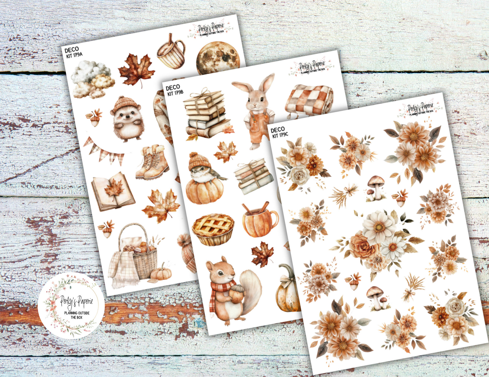 Fall Harvest in Plaid # 179 – Autumn Feels in Orange, Browns and Plaid Planner Stickers Micro Kit