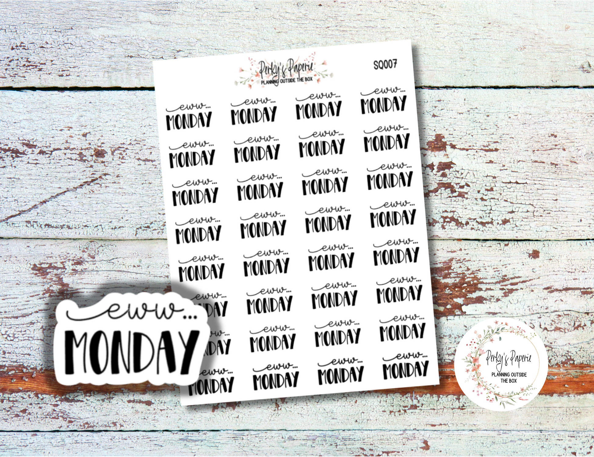 Eww Monday Sassy Snarky Quote Planner Sticker, Verbally Embellish Your Journal or Planner - Quarter Sheet