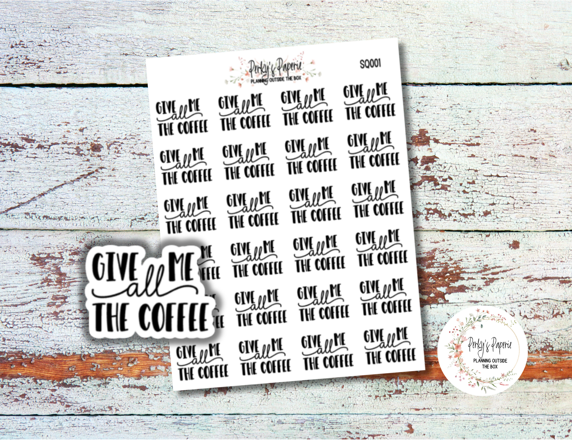 Give Me All the Coffee Sassy Snarky Quote Planner Sticker, Verbally Embellish Your Journal or Planner - Quarter Sheet