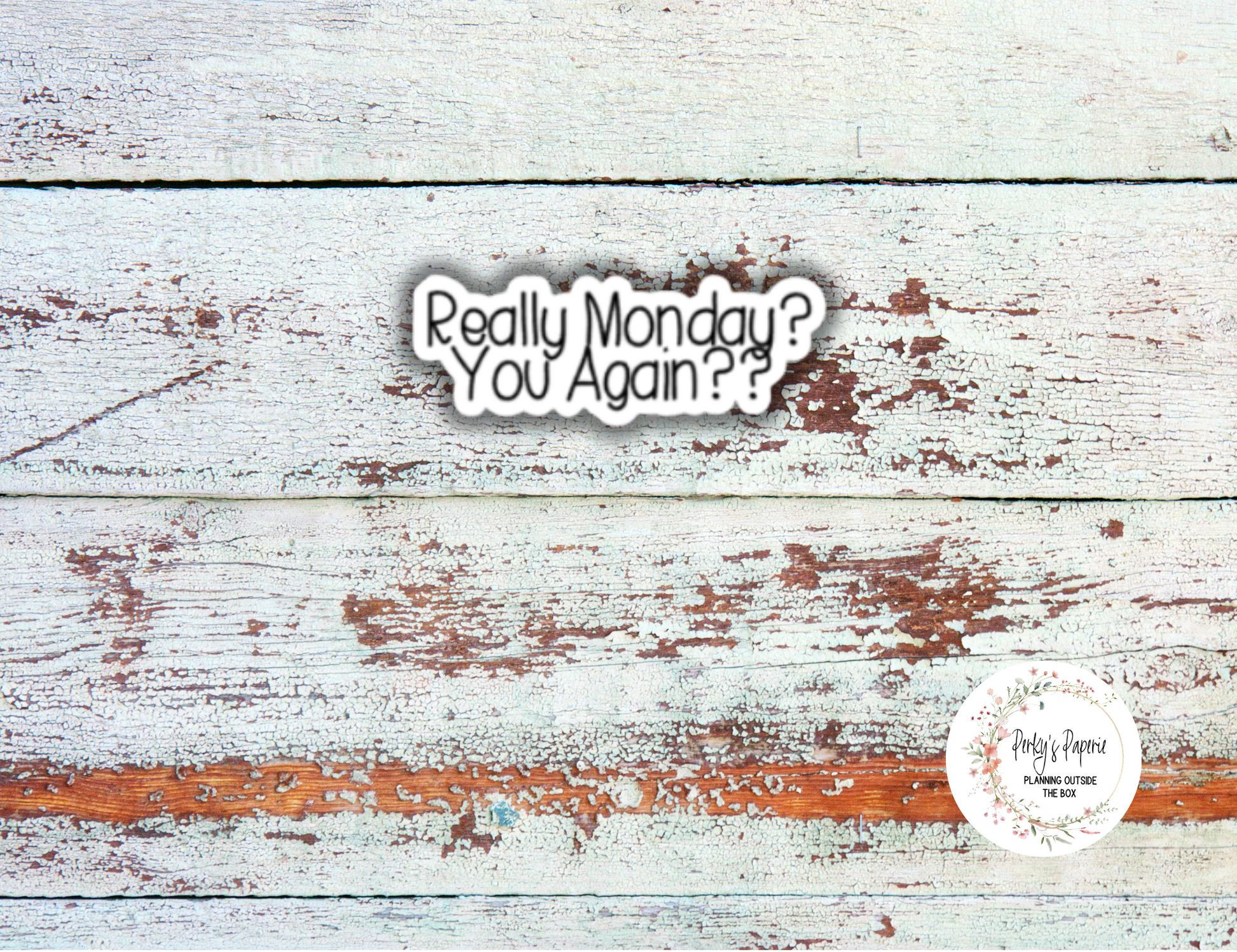 Really Monday? You Again?? Sassy Snarky Quote Planner Sticker, Verbally Embellish Your Journal or Planner - Quarter Sheet