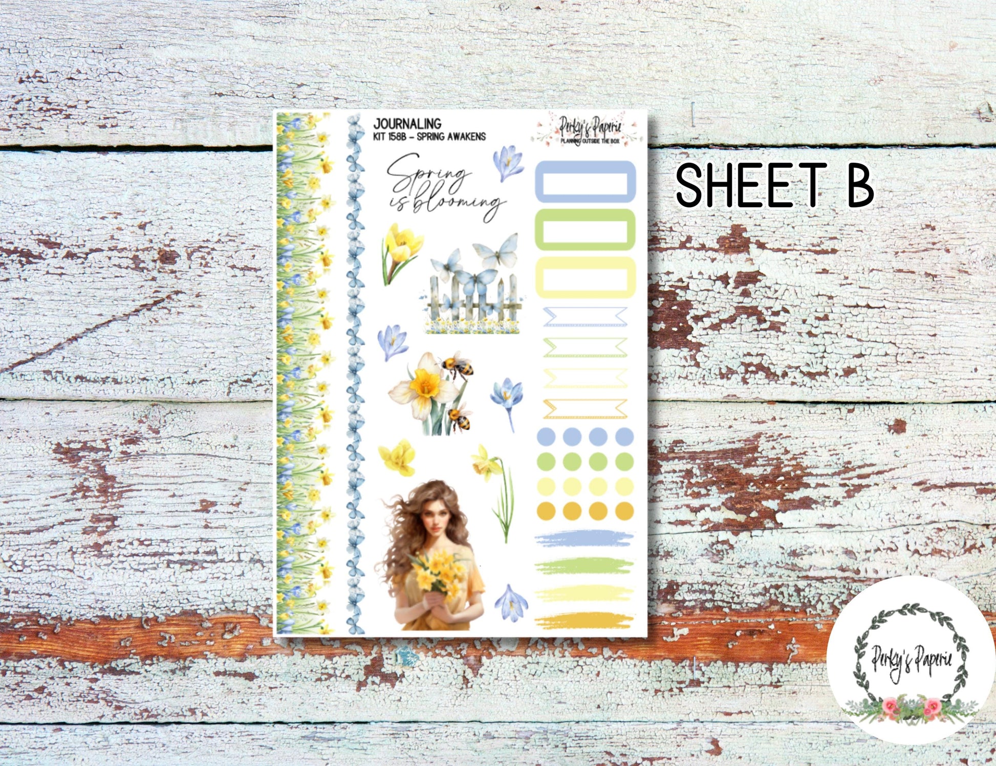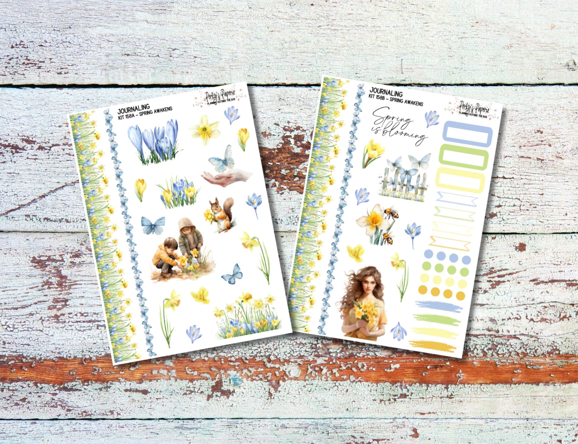 Spring Awkens Journaling Sticker Kit 158 Daffodils and Crocus Flowers, Planner Stickers for Journaling, Bujo, Planning and Junk Journaling