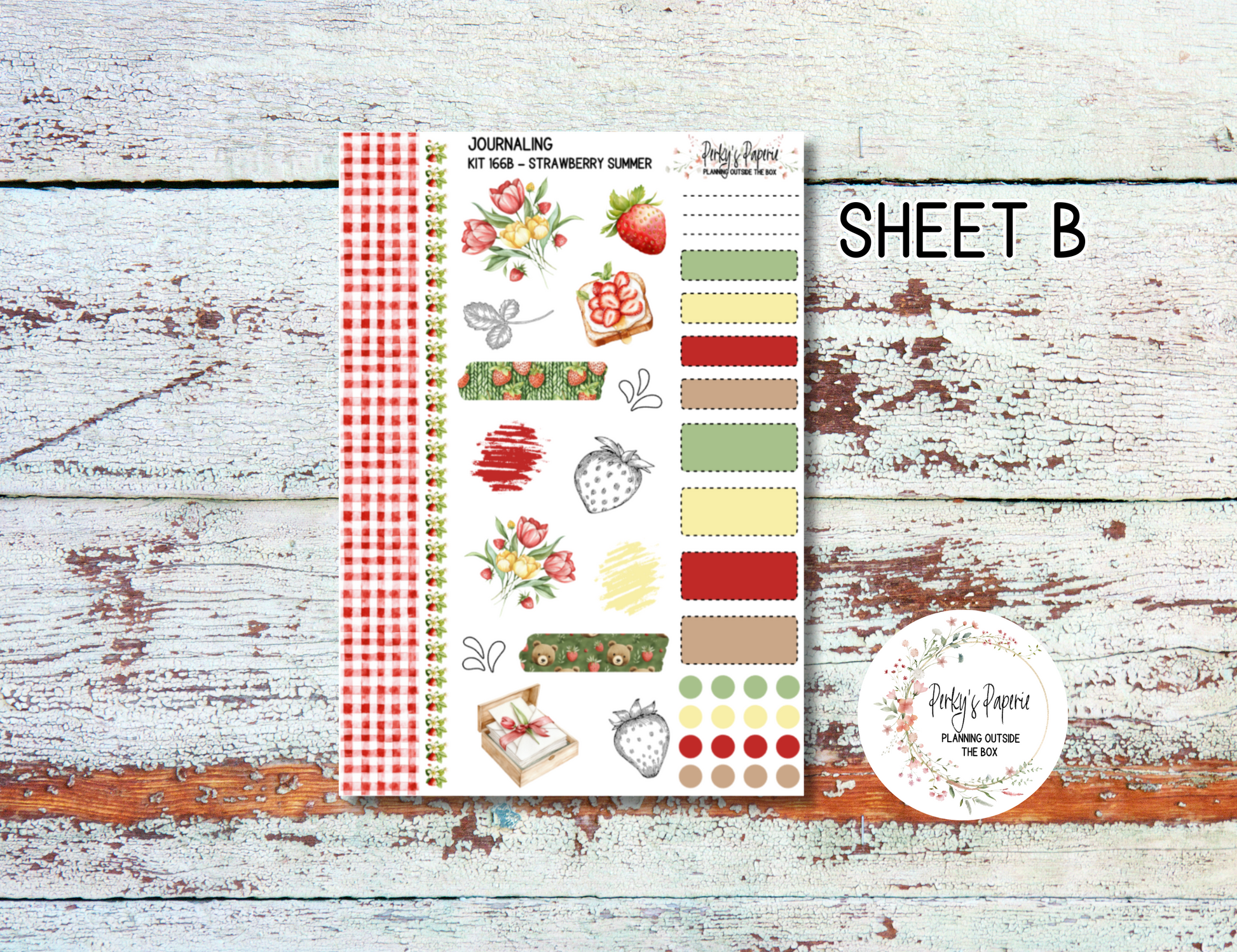 Strawberry Summer Journal, Scrapbook, Daily Planner Sticker Kit 166, Weekly and Daily Journaling Kit